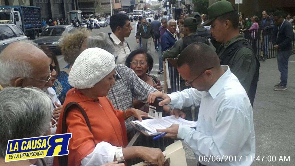 Jubilados y Pensionados siguen un paso adelante, introdujeron ante el CNE un documento contra el FRAUDE CONSTITUYENTE de Nicolas Maduro. Exigiendo el pago del Bono de Alimentación y Medicinas aprobados por la Asamblea Nacional y abalado por el mismo Tribunal Supremo de Justicia.